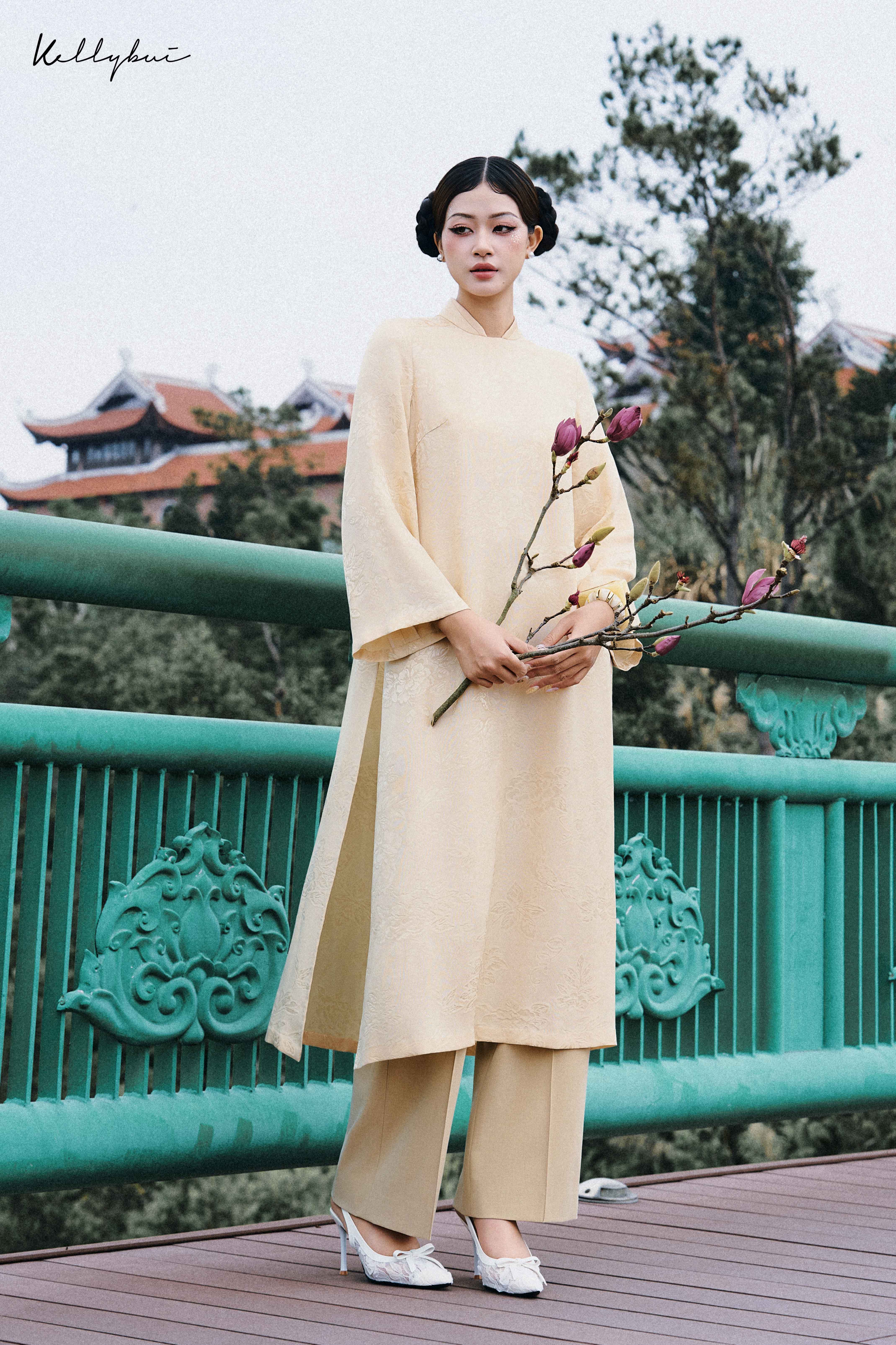 Các thiết kế trong BST áo dài Tết năm nay, được KELLYBUI lấy cảm hứng từ những chuyển động rất khẽ trong nội tâm của người phụ nữ: nhìn – cảm – lắng – nghĩ – nhớ – buông. Mỗi tà áo là một lát cắt tinh tế của hành trình ấy, được thể hiện qua phom dáng áo dài cách tân, tiết chế trong đường nét nhưng giàu chiều sâu cảm xúc. Chất liệu lụa tơ tằm cũng được ưu ái chọn lựa, nhằm ôm trọn những chuyển động cơ thể mà vẫn giữ được sự trang nhã.