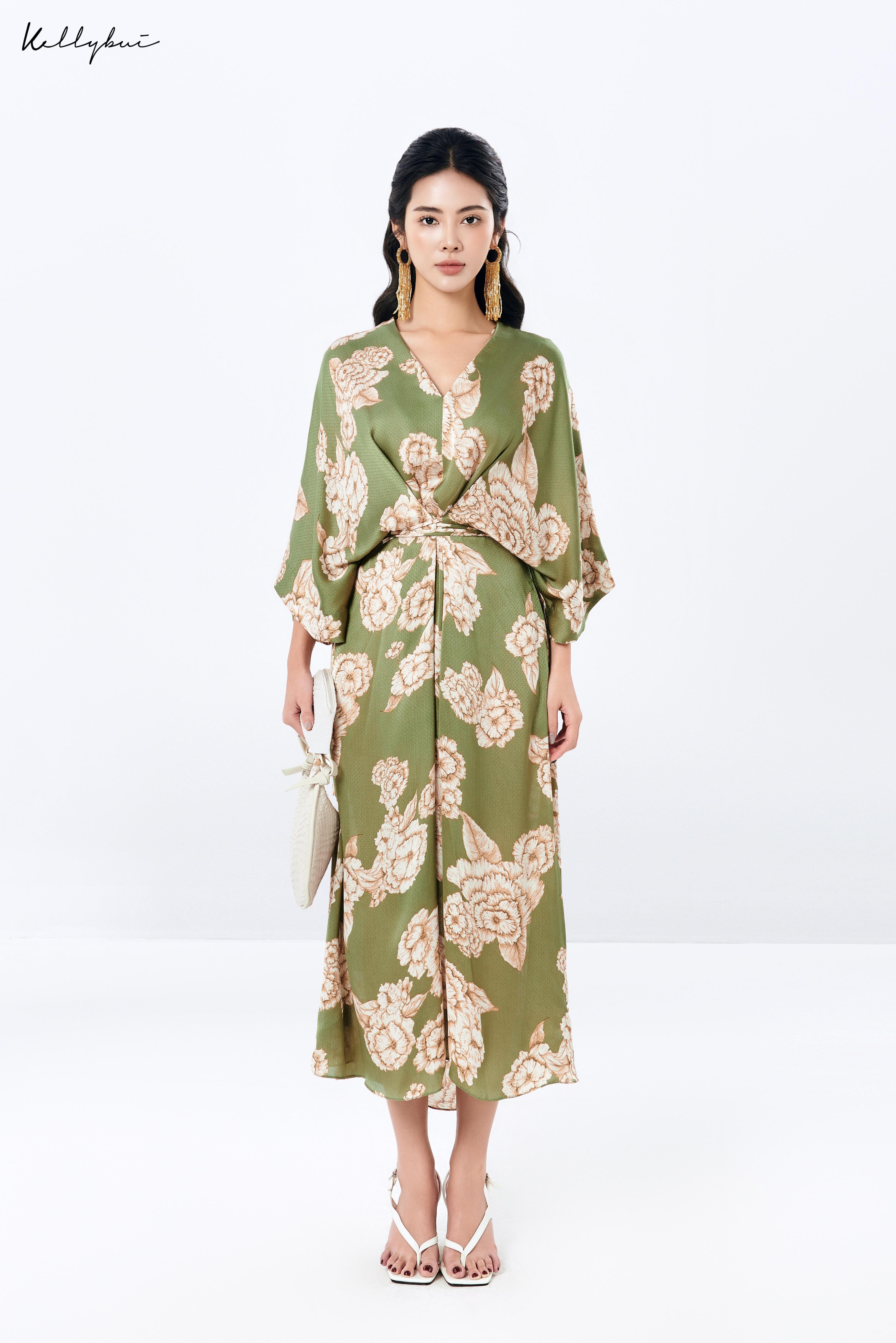 Váy liền chifon hoa văn rêu